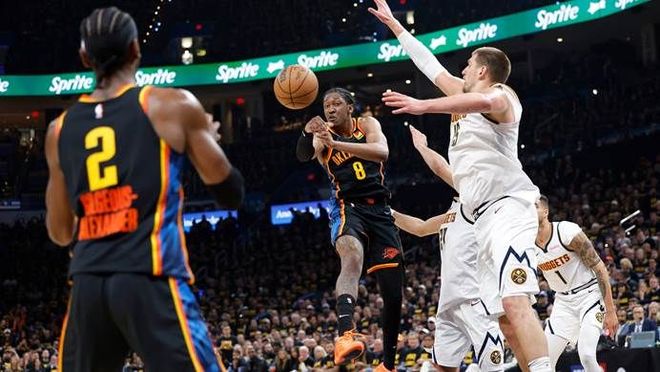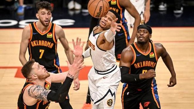 雷霆第二场终于有机会证明,掘金队的轮转防守并不是非常到位,常规赛多次倒在了包夹鸭梨的策略下,球队在这方面的纠错能力还是很强的,转移球、三分,这个策略在当下NBA是最难解的题,大空位谁都会出手,但在弱机会下,雷霆球员依然很坚决出手三分,这一点执行的非常好。