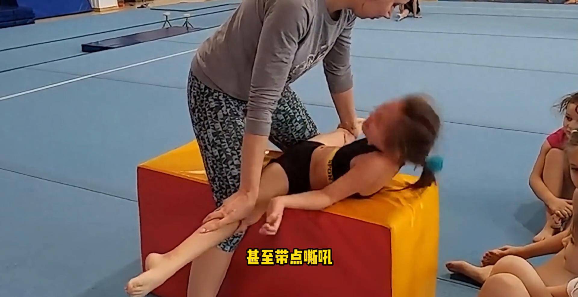 女孩被体操教练强拉一字马开腿220度疼痛难忍痛哭